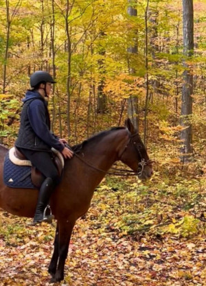 I am taking a gap year with the intention of attending the Equine Management program at the University of Guelph to deepen my knowledge and become a registered Equine Canada Coach. I also take three riding lessons weekly to continue my education as a rider and a coach.