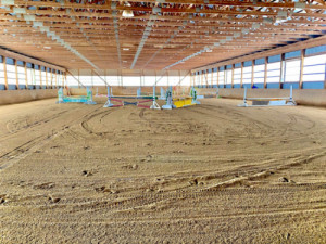 Enjoy a well-lit 200 x 84 indoor riding arena with a course of jumps and dressage letters. For schooling, choose between Hunter and Jumper courses.