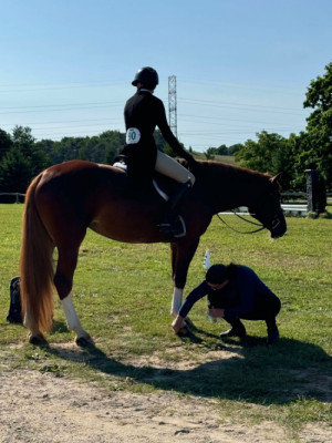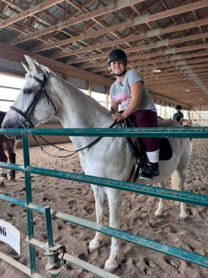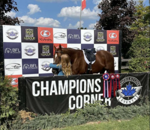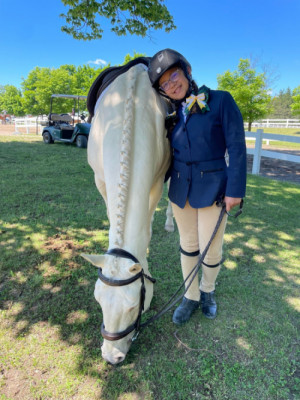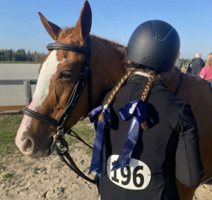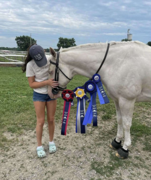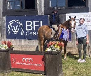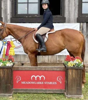 Boyd has also competed in the Hunters and Jumpers at Meadowlarke twice, coming home in the ribbons every time. He’s currently in a consistent program, adding more buttons and polish each week, and continues to improve with every ride.