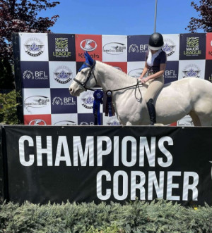 He can turn on the power as a quick, game jumper pony, or go quiet, long, and low in the hunters — showcasing beautiful form O/F or on the flat! A consistent winner in the medals and derbies, Desi never fails to impress.